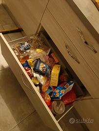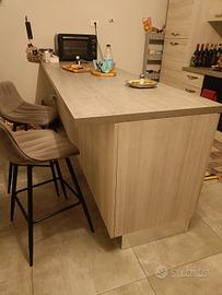 Penisola cucina modello Stella Mondo convenienza, fatta su misura colore eucalipto bianco con piano color cemento. Creata su misura con cassetti e sportelli a rilascio lento. Molto capiente, è utilissima anche come piano d'appoggio. Vendo con abbinati i due sgabelli color grigio. Misure:lunghezza 270 Profondità mobile 60cm Larghezza piano 80 Altezza 90cm Praticamente nuova non ha difetti, pagata 2200 euro