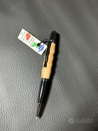 Splendida penna artigianale realizzata in vero legno naturale, lavorata con cura al tornio per ottenere una forma elegante e confortevole da impugnare. Ogni penna è un pezzo unico, perché le venature del legno rendono ogni lavorazione diversa dall’altra.