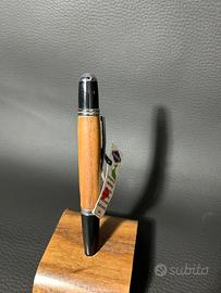Splendida penna artigianale realizzata in vero legno naturale, lavorata con cura al tornio per ottenere una forma elegante e confortevole da impugnare. Ogni penna è un pezzo unico, perché le venature del legno rendono ogni lavorazione diversa dall’altra. La struttura è impreziosita da componenti metallici in acciaio, resistenti e raffinati, che donano alla penna un design moderno ed elegante. Perfetta per: •chi ama gli oggetti artigianali •un regalo originale e di classe •professionisti, studenti o appassionati di scrittura Caratteristiche: • Corpo in legno naturale lavorato a mano • Componenti in acciaio • Realizzata con lavorazione artigianale al tornio • Design elegante ed ergonomico • Ogni pezzo è unico Un oggetto che unisce artigianato, eleganza e funzionalità, ideale per distinguersi anche nei piccoli dettagli quotidiani.