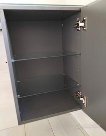 Causa trasloco vendo pensile bagno laccato grigio Ikea Top in vetro e due ripiani interni sempre in vetro. Misura cm. 40x30xh.58