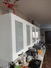 3 pensili vetrinetta bianco con ripiani in vetro. H73x90 2pz H 73x60. 1pz lunghezza totale cm 240 maniglia dorata