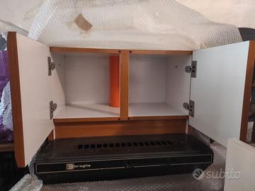 Mobile pensile a doppia anta con 1 ripiano, assemblato su cappa aspirante marca BRAGLIA, da 60 cm.