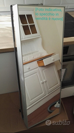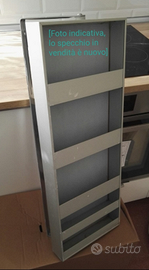 Specchio contenitore con mensole girevole... la struttura e la cornice è in metallo e di colore argento/grigio.