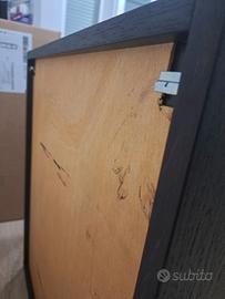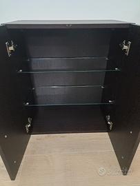 Pensile da bagno in legno color wenge, in buone condizioni, completo di staffe per il fissaggio a parete, dimensioni L60xH70xP30 cm