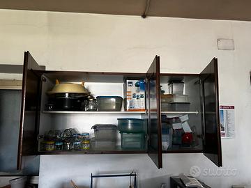 Vendo mobile pensile da cucina in legno color marrone, con 3 ante totali.