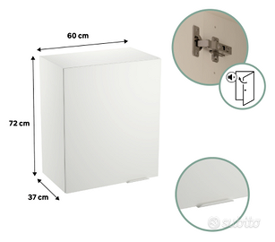 Vendo per trasloco 4 pensili DELINIA ELEKI bianco, larghi 60 cm e con un'anta, ideale per riporre le stoviglie. Grazie alle cerniere ammortizzate, si chiude in modo fluido e silenzioso. Il prezzo è per ogni modullo. Questo mobile da cucina comprende: - 1 mobile in truciolare rivestito in melaminico bianco, con 1 ripiano e 1 anta bianca - 1 maniglia in alluminio bianco - 2 cerniere con apertura a 110° Il design del mobile prevede un'intercapedine di 1,6 cm per consentire il passaggio dei cavi elettrici attraverso il retro del mobile e compensare le pareti irregolari. Per il fissaggio alla parete, utilizzare viti, rondelle e tasselli adatti al tipo di materiale della parete da acquistare separatamente. Il mobile, l'anta e la maniglia sono tutti dello stesso colore bianco, per garantire una finitura di alta qualità e senza tempo. Tipo di mobile:Pensile Nome della serie:Eleki Materiale principale.Truciolare Altezza totale (in cm)72.1 Larghezza totale (in cm)60 Profondità totale (in cm)37 Configurazione1 anta Spessore anta (in mm)16 Spessore della scocca (in mm)16 Maniglia inclusaSì Famiglia coloreBianco Aspetto della facciata esternaOpaco Certificazione dei prodotti con cellulosa (legno, carta...)PEFC Solo consegna a mano in zona Borgo Vittoria, Torino.