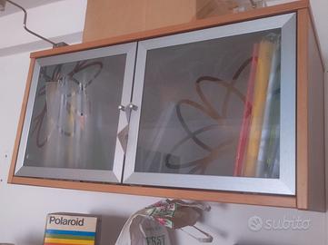 vendo causa trasloco pensile da arredo camera in legno color ciliegio con antine in vetro grigie opacizzare, con minuteria di montaggio inclusa. dimensioni 0,845 larg * 0,36 prof * 0,42 altezza. disponibile a spedire.