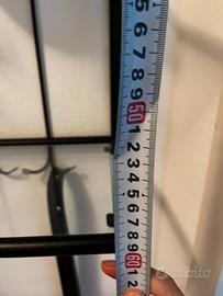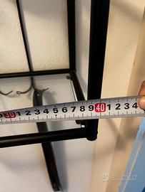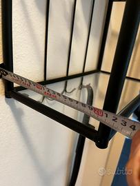Pensile in ferro battuto con piani in vetro conferisce a qualsiasi stanza un tocco di eleganza. Il suo design moderno si adatta a molti stili di arredamento. Usato, ma in ottime condizioni, è ideale per la presentazione di piccoli oggetti, piante o decorazioni. Approfittate dell'occasione e donate al vostro spazio uno stile unico! Dimensioni: 60 x 40 x 20 cm.