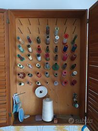 Pensile artigianale circa 60cm x 40cm in legno porta rocchetti di filo per cucire