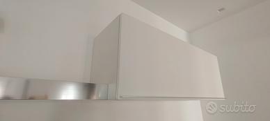 in legno bianco laccato lucido e maniglia acciaio lucido