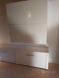 Pensile soggiorno 4 cubi ad anta, bianco lucido, misure tot. 121x121x38,5