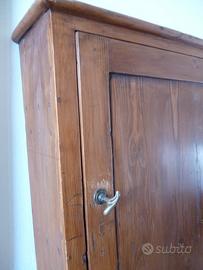 Pensile antico epoca 1800, in noce chiaro. Molto bello, con 3 ripiani, con chiusura perfettamente funzionante. Vendo per cambio stile arredamento. Larghezza 69 x 18 prof. x 89 altezza (misure complete). Ritiro di persona, non spedisco.