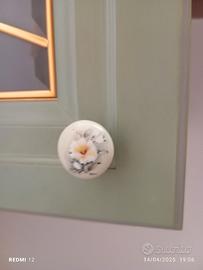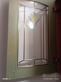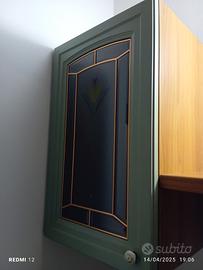 pensile in legno e vetro. colore verde e marrone sul vetro decoro con fiore e oro. mensoline interne legno massello. misure: posso consegnare se nei paraggi