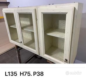 Pensile vetrina a tre ante. Scocca e ante in vero legno.