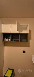 Pensili fatti a cubo. 3 azzurri modello Eket Ikea aperti dimensioni 35x25x35 cm. Più 3 cubi con sportello bianchi più profondi 35x35x35 e con chiusura a spinta. Ne vendo anche solo 3 di un tipo a metà prezzo circa.