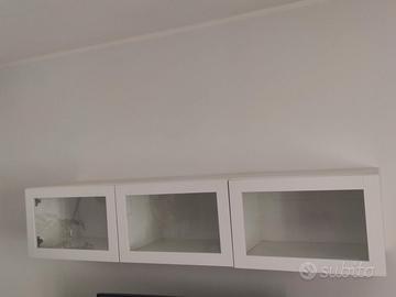 Vendo pensili a muro IKEA BESTÅ, colore bianco, composti da 3 moduli con ante in vetro.