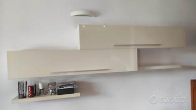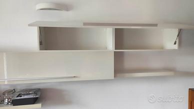 Due pensili in legno bianco, in condizioni eccellenti, applicati al muro con zanche a scomparsa, ideali per contenere libri o oggetti vari. Dimensioni di ciascuno 180x35x35 cm Vendo 95 euro