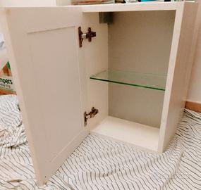 Due pensili da bagno, marca Compab modello Diamante . Finitura abete bianco opaco. Alti 50cm,larghi 35 cm profondi 20 cm.