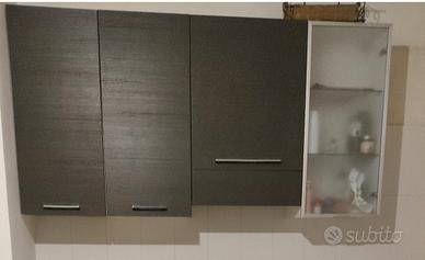 vendo pensile da 45 con scolapiatti + pensile da 45 con due ripiani + pensile da 60 con cappa filtrante , pensile a vetro con due ripiani. Altezza 92 cm Pronti al ritiro xchè già smontati e puliti
