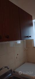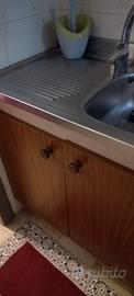cucina completa con pensili e sottolavello con lavello, senza fuochi. Formata da scolapiatti a due ante, mobile contenitore due ante, lavello e sotto lavello due ante. ogni anta misura circa 60 centimetri.