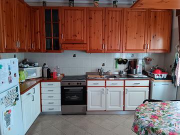 Pensili cucina in legno con vetrinetta , scolapiattti, altri pensili, compreso angolare. Il tutto subito disponibile e in buone condizioni regalo per motivo trasloco. In tutto 8 pensili Misure : * 2 pensili 60x60 1 pensile 80 x60 1 pensile 60× 60 ( scolapiatti) 1 pensile 60x60 ( sopra cappa con luce e aspiratore) 1 pensile ( angolare 30x30) 2pensili 60×60 Metri 3.50 ( pensili in parete) Metri 1.20 ( pensili laterali).
