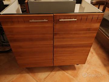 Vendo cucina vero ciliegio buono stato. Colonna frigo 60 senza frigo, scolapiatti da 60 + altro pensile da 60, 2 pensili da 45, pensile cappa da 60 e pensile a vista da 20. Base lavabo da 90 con lavabo doppia vasca e sgocciolatoio, base forno 60 senza forno ma con piano cottura da 60 seminuovo, oliera da 15 e base da 20. Penisola da 120, due vetrine + colonna da 45 h 197+54. Prezzo modico vendo anche singolarmente.