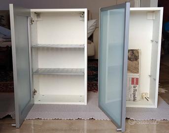 N. 2 PENSILI bagno IKEA dalle dimensioni di cm 68 (altezza ) x cm 21 (profondità) x cm 40 (larghezza) con cassa in compensato rivestito ed ante in vetro ed alluminio.