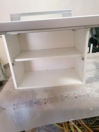 Pensili parete misure : altezza cm 48, larghezza cm 60, profondità cm 33, uno si apre verso l'alto, il secondo di lato.
