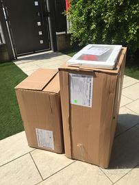 Vendo due pensili per soggiorno, colore grigio tortora. Un pensile a giorno e uno con anta. Entrambi sono nuovi ancora inscatolati perchè per errore nell’ordine al mobilificio sono arrivati doppi. La coppia nuova nelle scatole sono come quelli in foto messi a muro. Dimensioni nelle foto sulle scatole.