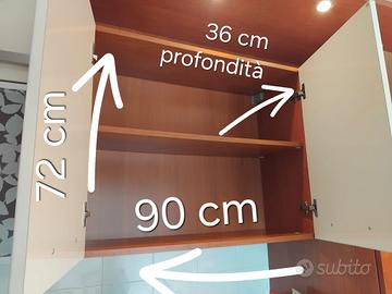 vendo pensili da cucina in ottimo stato. Laccati color panna e ciliegio. Varie misure come da esempio. Prezzo in funzione dei moduli. contattatemi anche x infobsenza problemi.