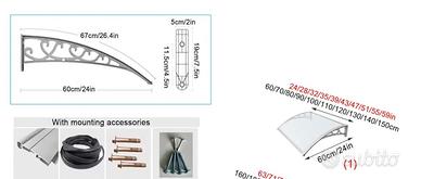 Pensilina per Copertura in Policarbonato Trasparente,Parapioggia Tettoia Tenda da Veranda per Esterno,con Staffa,Protezione Uv da Pioggia e Neve Pensilina Tettoia per Porta (60x60cm/24"x24")