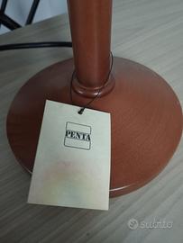 Lampada da tavolo modello Lolly vintage, con struttura in legno massello, paralume in vetro soffiato esterno blu interno bianco alta cm 47 diametro paralume cm 25