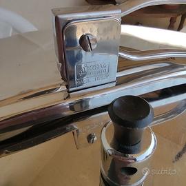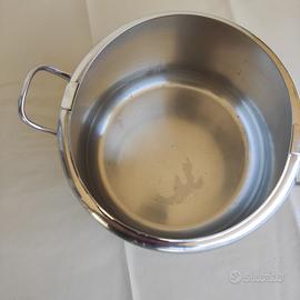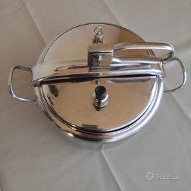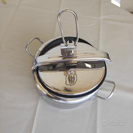 Pentola a Pressione Elettro Fiamma Jet Rapid - NUOVA mai usata pentola a pressione Elettro Fiamma, modello Jet Rapid, capacità standard (5-7 litri circa). L'oggetto è nuovo, mai utilizzato, , ma senza scatola originale Materiale: Acciaio Inox 18/10 di alta qualità, ultra resistente. Caratteristiche: Fondo termodiffusore adatto a vari piani cottura (controllare il fondo per l'induzione, solitamente eccellente su gas ed elettrico). Sicurezza: Dotata di valvola di esercizio e sistema di sicurezza Jet Rapid. Condizioni: Perfette, fondo di magazzino. La guarnizione è nuova e morbida. Ideale per cotture veloci e salutari (bolliti, legumi, minestroni) risparmiando tempo ed energia. Un pezzo "vintage-nuovo" indistruttibile rispetto ai modelli economici moderni.