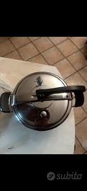 Vendo pentola a pressione tradizionale in acciaio inox, robusta e funzionale. Dotata di chiusura con manico centrale a leva, manici laterali resistenti al calore e valvola di sicurezza. Ideale per cucinare velocemente legumi, carne, zuppe e verdure, riducendo i tempi di cottura. Facile da usare e da pulire. Condizioni: usata ma ben tenuta, perfettamente funzionante. Capiente, adatta per uso domestico.