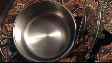 Pentola a pressione in acciaio inox 18/1 inossidabile; Coperchio con apertura facilitata; Utilizzabile solo su cucine a gas. Condizioni: ottime (nuova e mai utilizzata). Non presenta scatola di imballaggio ma solo cellofan originali di acquisto.