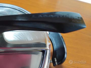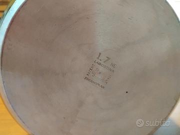 in acciaio inox. marca lagostina.compresa nel prezzo, 1 valvola di ricambio.misure cm. 20 altezza,più il coperchio,cm. 23 diametro.usata poco.