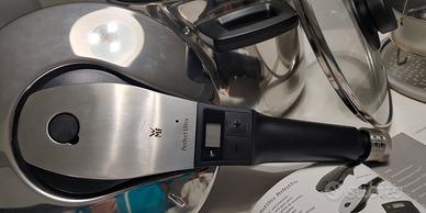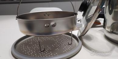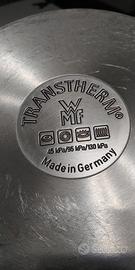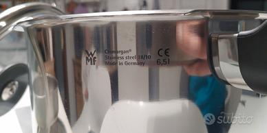 Pentola a pressione WMF Perfect ultra capienza 6,5 litri completa di istruzioni, coperchio trasparente per possibile utilizzo come normale pentola e cestello per cottura a vapore.
