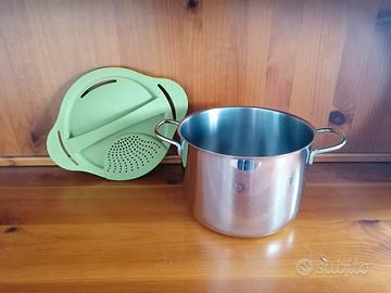 Ottima e funzionale pentola in acciaio inox con coperchio scolapasta con 2 differenti fori.