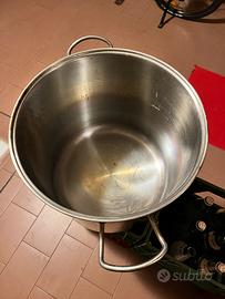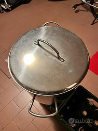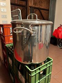 Pentola acciaio Inox con coperchio usata una sola volta per bollitura mosto aceto balsamico condizioni pari al nuovo no segni o graffi diametro 50 altezza 50 capienza litri 98.