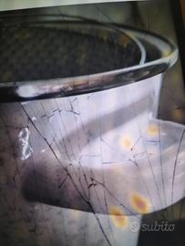 Pentola in acciaio smaltato con decorazione asparagi legati da nastro rosso. Coperchio in vetro e cestello. La sua forma particolare cuoce gli asparagi in posizione verticale. Il cestello interno è in rete metallica che facilita l'inserimento e la cottura degli asparagi senza romperli. Usata pochissimo. Lieve macchia sul fondo. Ottime condizioni
