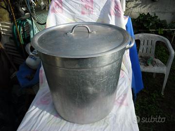 Pentolone in alluminio marca Agnelli , bocca da 36cm , altezza 34 cm ,completa di coperchio , usata 3 volte per sbollentare i pomodorini per la conserva , vendo a meno di metà prezzo per cessazione orticello causa divieto condominiale