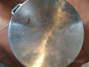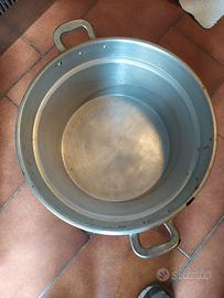 Pentolone in alluminio con coperchio in buone condizioni misure altezza cm 19 diametro cm 39 e base cm 29