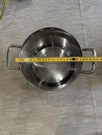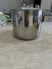 Vendo bellissima pentola alta (misure da "pentola per pasta" o brodo) della celebre marca italiana Pintinox. Caratteristiche principali: • Materiale: Acciaio Inox 18/10 di alta qualità (massima igiene e resistenza). • Dimensioni: Diametro 20 cm, altezza circa 18 cm. • Condizioni: Ottime, usata con cura. L'acciaio è lucido e non presenta ammaccature. • Dettagli: Doppia maniglia ergonomica e fondo spesso per una diffusione uniforme del calore. • Made in Italy. Perfetta per cuocere pasta, preparare brodi o bolliti. Un pezzo robusto e professionale che dura una vita in cucina. Nb: niente coperchio. Prezzo trattabile