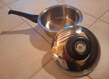 Pentola AMC 2.3 litri, dotata di 1 manico e 1 coperchio. Dimensioni: - Diametro: 19cm - Altezza: 9cm - Lunghezza manico: 18cm - Diametro coperchio: 20cm Usata. Vedi foto con marchio. Luogo di ritiro: - Porlezza (CO) - Grassobbio (BG) - Vigonovo (VE)