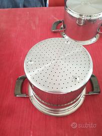 Vendo Pentola Amc da 4,7 lt con colapasta interno. La pentola è usata e fa parte di una collezione di circa 20 anni fa. Per eventuali domande sono a disposizione