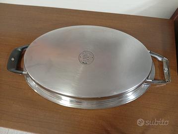 Vendo pentola/pesciera ovale originale AMC in acciaio inossidabile di alta qualità, completa del suo coperchio con pomolo Visiotherm (indicatore di temperatura).
