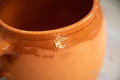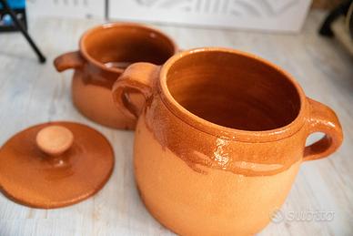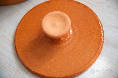 Pentola naturale marchio Bionatural in argilla e pietra refrattaria. IL rivestimento vetrificato è realizzato senza piombo e si può utilizzare direttamente su fiamma senza spargifiamma sotto.