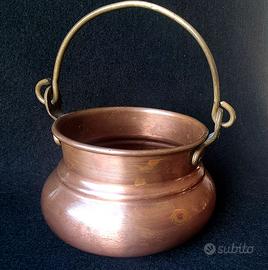 Pentola bollitore in rame vintage - rame con manico in ottone, Italia, 1930-1950