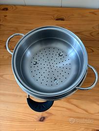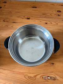 Lagostina accademia , acciaio inox 22 cm fondo 5 strati , con coperchio in vetro e vaporiera , é adatta a qualsiasi piano cottura , anche induzione .