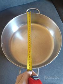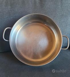 Pentola tegame casseruola Lagostina vintage, in acciaio diametro 27 cm - pentola tegame casseruola semifonda con manico Senza coperchio - in acciaio, marca Lagostina - usata come da foto, graffietti e segnetti come da foto - diametro 27 cm